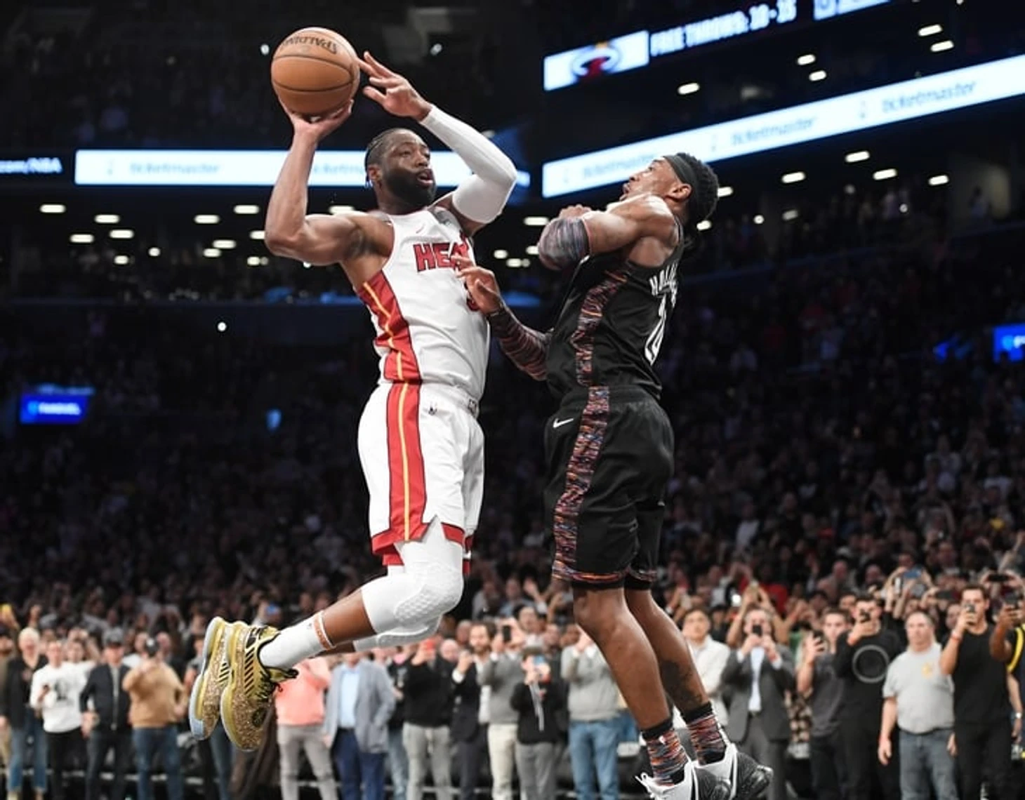 Вчера в честь последнего домашнего матча Дуэйна Уэйда в Майами провели мощную праздничную церемонию, после которой Уэйд пообещал сыграть на следующий день в гостевом матче «Хит» в Бруклине, даже несмотря на падение со стола.