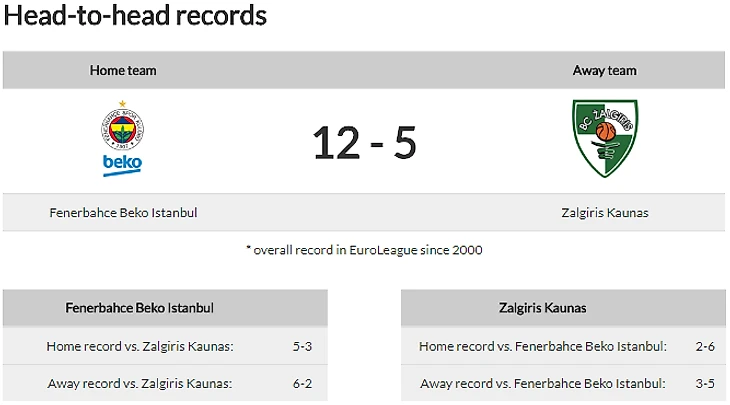 Следующими участниками плей-офф Евролиги, через 45 минут после старта московской встречи-открытия, станут турецкий Фенербахче и литовский Жальгирис. Баскетбольный клуб из азиатской части самого крупного по численности населения города Европы (в Стамбуле проживает более 14 млн чел) не просто выйдет на паркет «ULKER SPORTS AND EVENT HALL» в качестве бесспорного фаворита встречи, но будет защищать 17-матчевую домашнюю серию побед! В рамках нынешней Евролиги зрители на трибунах ни разу не ощущали горечи поражения в 17 домашних играх регулярки Фенербахче! Более того, турецкий клуб одержал победы в обоих противостояниях между командами с общей разницей в +24 очка, что явно не сулит литовцам ничего хорошего. Но все не так однозначно в данном противостоянии, как может показаться на первый взгляд.