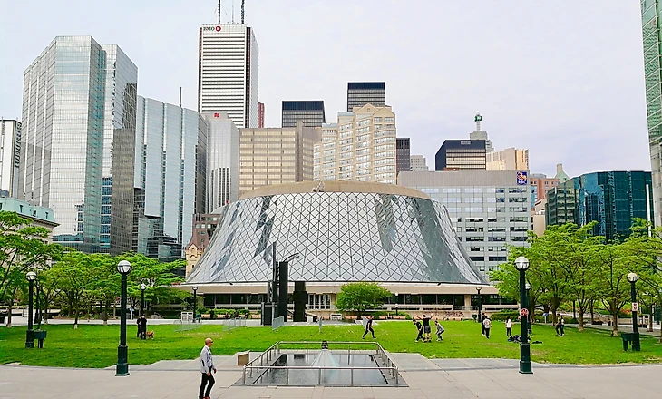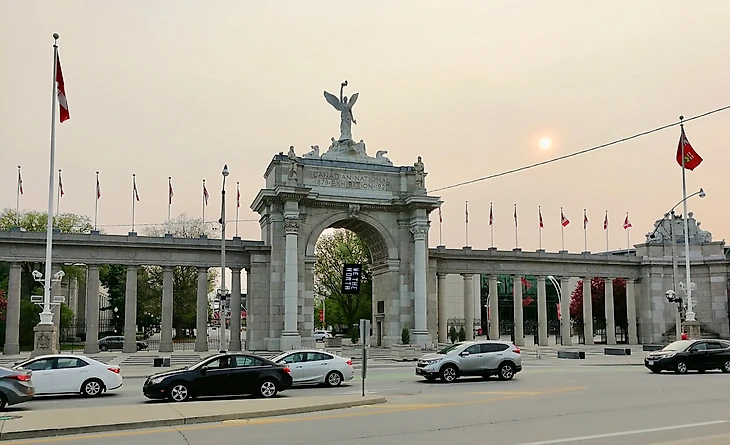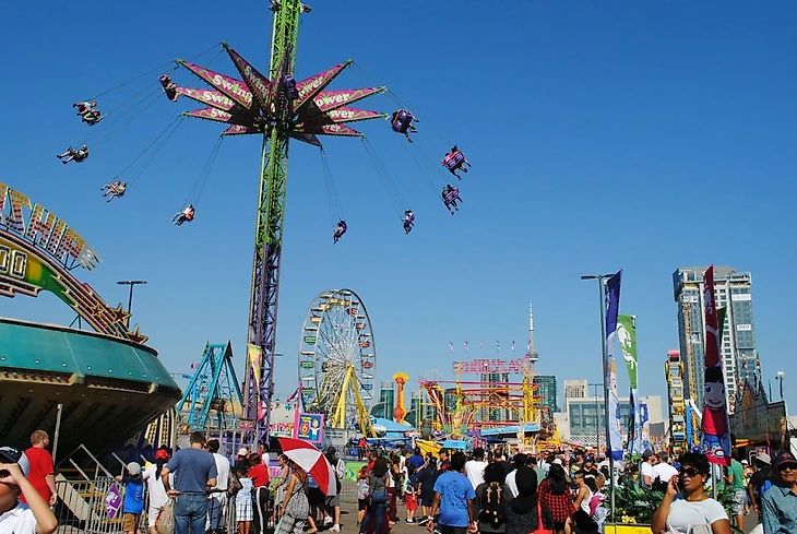 Флаг также присутствует около самых главных и узнаваемых мест Торонто. Например, Эксибишен Плейс. Первоначально он использовался в военных целях. В 1879 году здесь стали проводить промышленную выставку в Торонто, которая позже стала крупнейшей ярмаркой в мире. По сей день на территории проходит канадская Национальная выставка, которая очень популярна среди жителей Торонто.