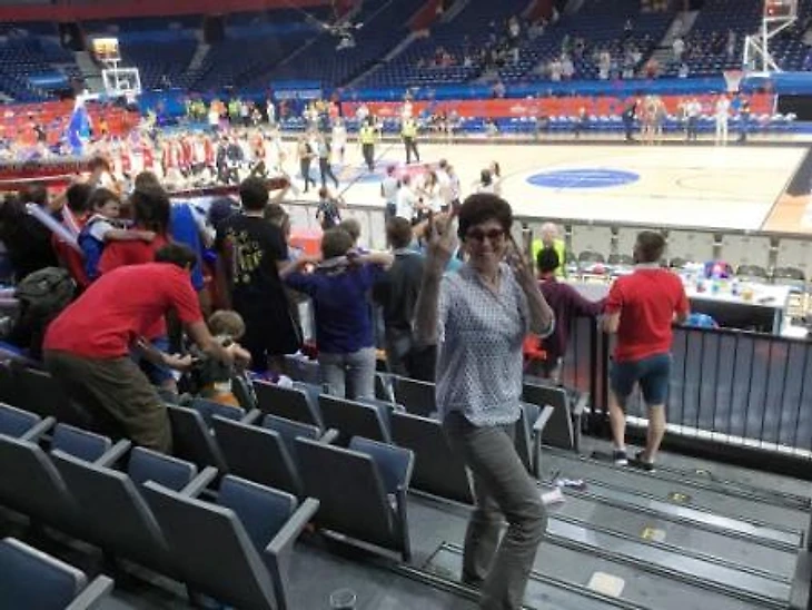 Обыграв в 1\8 чемпионата Европы сборную Италии 63:54, женская сборная России вошла в восьмерку сильнейших команде Евробаскета. Среди болельщиков россиянок и любителей баскетбола в целом на трибуне была и заслуженный тренер России - соосновательница команды "Вологда-Чеваката", наставник "Бульдогов" Татьяна Карамышева.