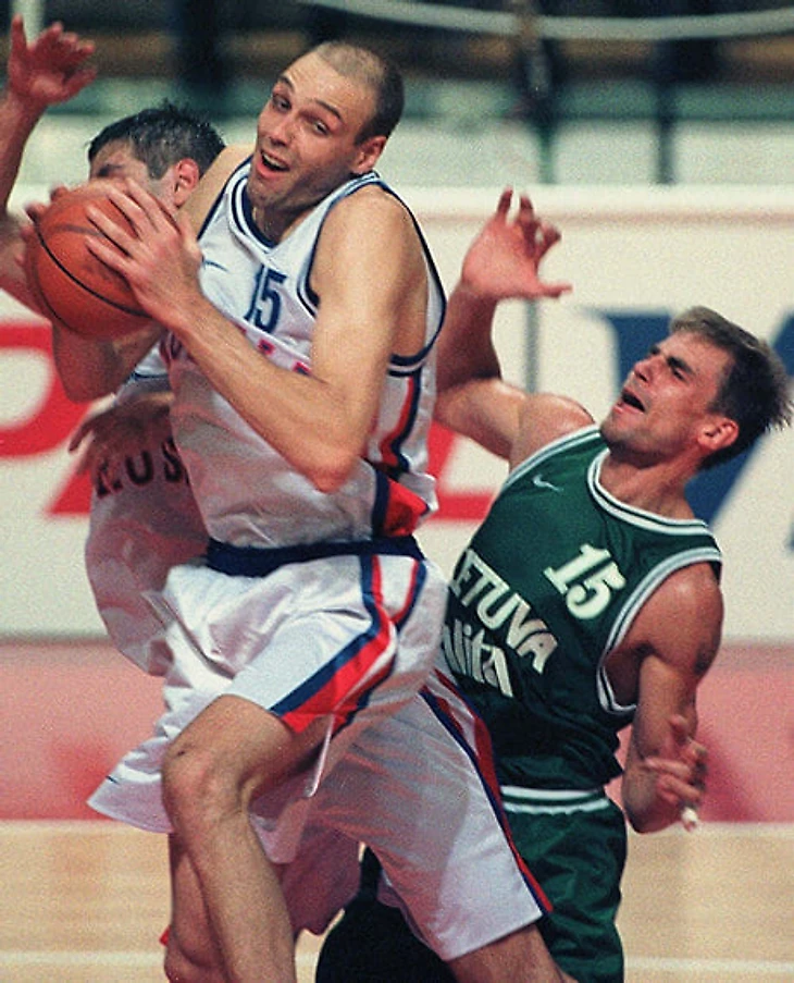 – Да мне вообще наплевать было. Против меня вышел Шакил, а я несколько раз не дал ему забить. Да какая разница, как они себя ведут?! Я против них играл и не обосрался. Хотя в финале они как выскочили на нас, чуть ли не 24:0… Реджи Миллер забил нам чуть ли не семь трехочковых, Дюмарс прихватил Базаревича – я впервые в жизни увидел, чтобы Базаревич спиной к кольцу вел мяч и не мог повернуться…