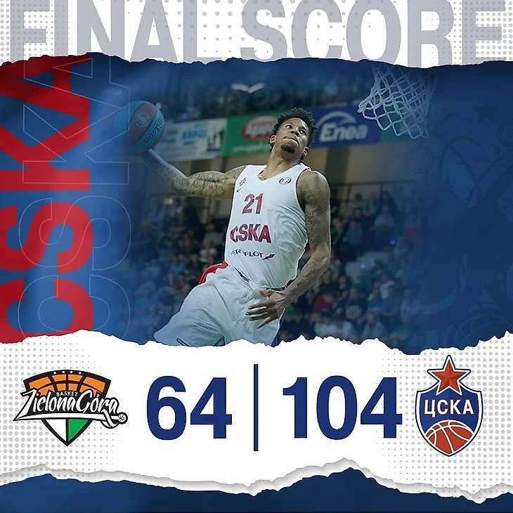 Встреча завершилась со счетом 104:64 в пользу армейцев.