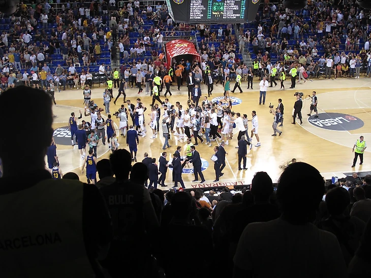 Следующее класико состоялось в начале сезона в финале Суперкубка, проходившего опять в Мадриде. Суперкубок проклятия хозяина не имеет, скорее, наоборот. Повышению градуса и без того самого напряженного противостояния Испании способствовало подписание «Барселоной» воспитанника «Реал Мадрида» Николы Миротича, решившего вернуться из НБА в Европу, но выбравшего для этого не alma mater, а стан заклятого соперника. Кощунство этого поступка подчеркивало присутствие в первом зрительском ряду мадридского Паласио другого кантерано Королевского клуба — Луки Дончича, болевшего за своих товарищей в унисон с домашними трибунами.