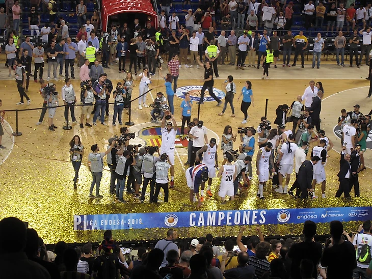 Следующим противостоянием за титул стала финальная серия Лиги, завершившаяся со счетом 3-1. Преимущество своего поля было у «Реал Мадрида». Самыми напряженными стали 2-я и 3-я игры — победителя определила разница в 1 очко, добытая на последних секундах (81-80 и 78-77). Героем 2-го матча стал Джейси Кэрролл, завершивший фирменным дальним броском финишный спурт своей команды, сумевшей отыграть 7 очков отставания на последней минуте. Героем 3-й игры серии, перебравшейся в столицу Каталонии, стал Томас Эртель, набравший 21 очко. Но в 4-м матче, проходившем также в Палау Блауграна, преимущество большую часть игры было на стороне «Мадрида», который выиграл (68-74) и взял 35-й чемпионский титул в своей истории.
