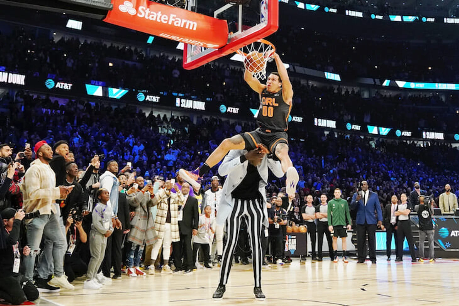 За данк через Тако поставили 47. Аарон Гордон вновь проиграл на последнем тайбрейке. При этом все пять его данков до этой попытки были идеальными и получали 50 баллов.