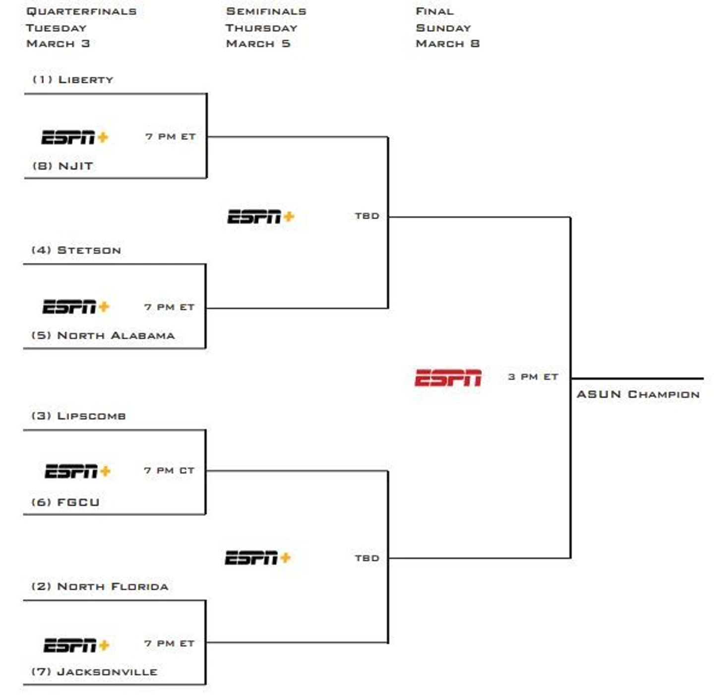 - Игра 4: (2) North Florida Ospreys - (7) Jacksonville Dolphins
