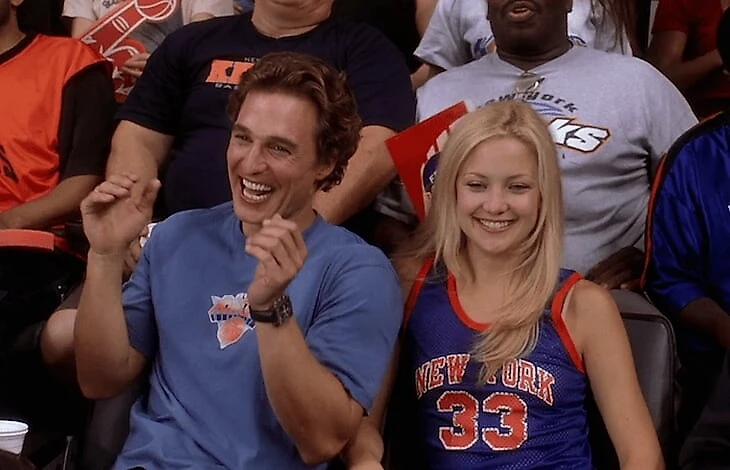 Разумеется, волею судеб и действительно смешного сценария, героиня Кейт Хадсон идет на первый матч с героем Макконахи, и это их официальное свидание. Макконахи по какой-то причине сам билетом не обзавелся, хотя он отчаянно болеет за «Никс», у него в кабинете висит застекленная майка Алана Хьюстона, а по всей квартире распихано большое количество фирменной атрибутики. Но мы с самого начала понимаем, что он хотя и фанат, но какой-то странный. В первой же сцене с его участием мы видим, что он требует у своего коллеги по рекламному бизнесу, с которым он видится каждый день, 20 долларов за победу в споре. Суть спора заключалась в том, выйдут «Никс» в плей-офф или нет. Эй, ребята, вы вообще в курсе, что плей-офф уже не только начался, но уже наступило время финала? Почему вы решили оформить результаты спора только сейчас? Вы вообще за Россию «Никс» болеете или как?