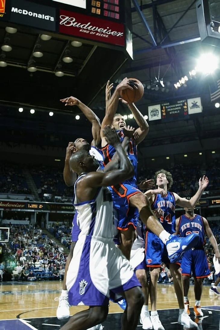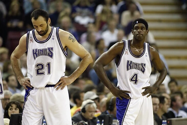 Напомню, что на самом деле «Никс» завершили тот сезон, разумеется, без всякого плей-офф с показателями 30-52, тогда как «Сакраменто Кингс» стали лучшей, я повторюсь, ЛУЧШЕЙ, командой регулярного сезона, одержав 61 победу. Это была та самая команда, которая влюбила в себя всех и вообще-то должна была проходить в финал, но случилась самая спорная в истории серия финала конференции против «Лейкерс», которая известно, как завершилась.
