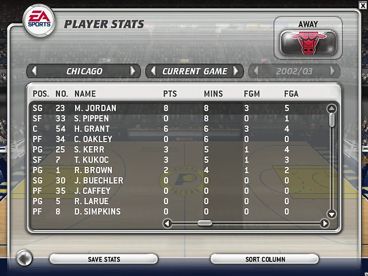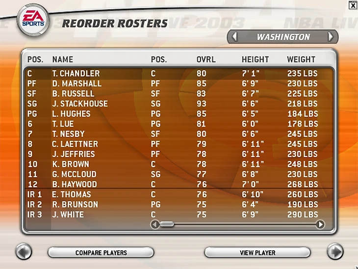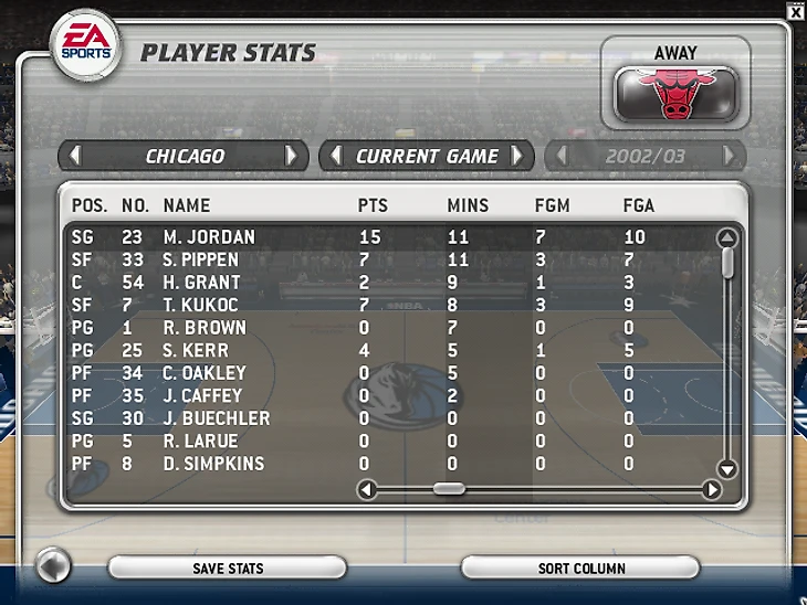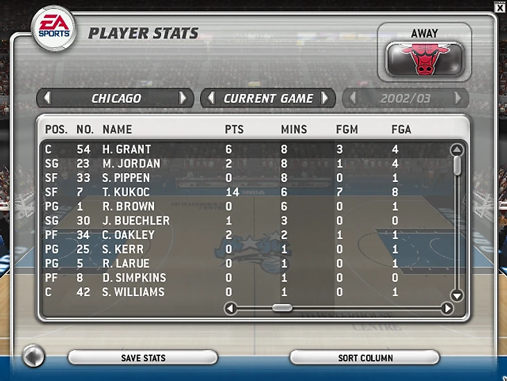 У Запада на скрине – запасные. Возвращение Дэвида Робинсона и 4 человека, которые в реальной жизни не были никогда на МВЗ. Поскольку при коротком сезоне у команд самое разное число матчей, а игра считает заслуги по общей статистике, выходит, что игроки «Портленда» просто успели набрать больше очков-подборов-передач, чем игроки какого-нибудь «Далласа», который провел почти в полтора раза меньше матчей к февралю.