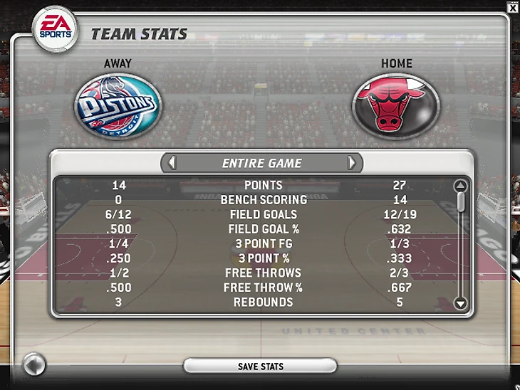 В четвертой четверти играли мои резервисты, и даже они переиграли старт «Пистонс» за эти две минуты 5:3. «Детройт» непривычно часто для CPU терял мяч и тормозил, отсюда всего 12 бросков. И всего 3 подбора у команды, где есть Бен Уоллес!