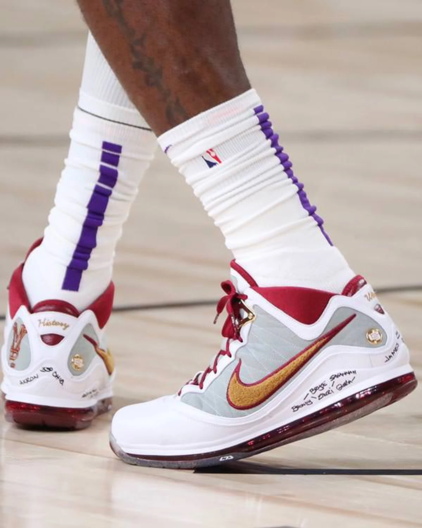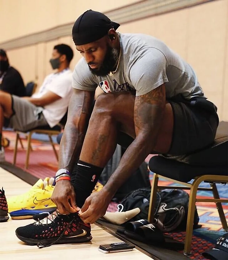 В «пузыре» Леброну не нужен лозунг на майке. Он давно использует свои кроссовки для разных посланий и легко помешает два десятка фраз.