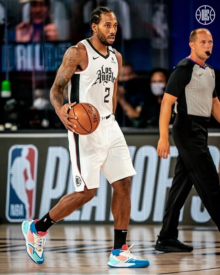 Прямо перед рестартом НБА в Орландо, Кавай представил дебютные именные кроссовки – New Balance KAWHI. Ленард играет и тренируется в «пузыре» только в них. New Balance сделал новые расцветки под каждый матч. И к началу серии против «Далласа» Кавай представил модель «4 Bounces» – ту из-за которой вообще ждали появление этого поколения. Цветовое исполнение «4 Bounces» в точности повторяет победные сниксы прошлого года и названием отсылает к четырем ударам мяча о дужки кольца после сирены. Это будет любимая модель фанатов «Филадельфии».