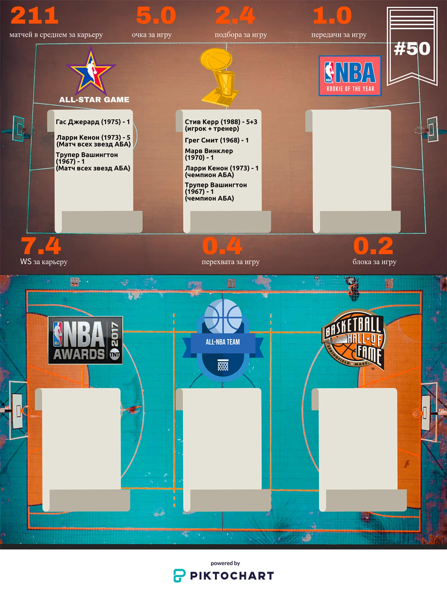 Ну и в конечном счете Керр решил отказаться от стипендии университета Калифорнии Стейт и стал звездой в Аризоне, вывел «Уайлдкетс» в Финал четырех 1988 года, позже уйдя на драфте под 50-м выбором. Он выиграл 3 чемпионских перстня с Филом Джексоном и ЭмДжеем в «Чикаго», затем еще 2 в «Сан Антонио» с Поповичем и Данканом, а дальше – занял должность комментатора на TNT, генерального менеджера «Финикс Санс» и, наконец, главного тренера «Голден Стейт Уорриорс».