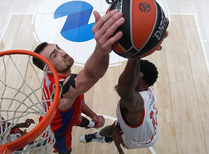 Стартовые минуты прошли в борьбе, где чуть интереснее смотрелся «Олимпиакос», не испугавшийся хозяйских трибун. Что и немудрено, когда на площадке играют опытнейшие Спанулис и Папаниколау, уничтожившие ни один галлон армейских нервов. 38-летний Василис по шкале качества находится где-то между Златаном Ибрагимовичем и Юрием Жирковым. Исходы матчей уже не решает (0 из 5 попыток 3-х очковых), но голевые передачи (7) отдает на славу.