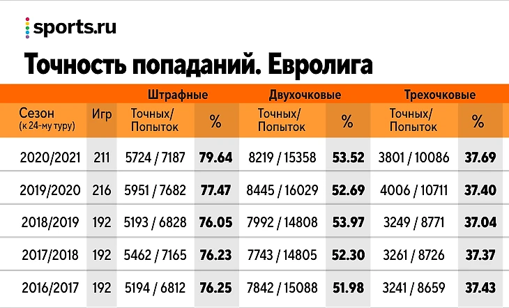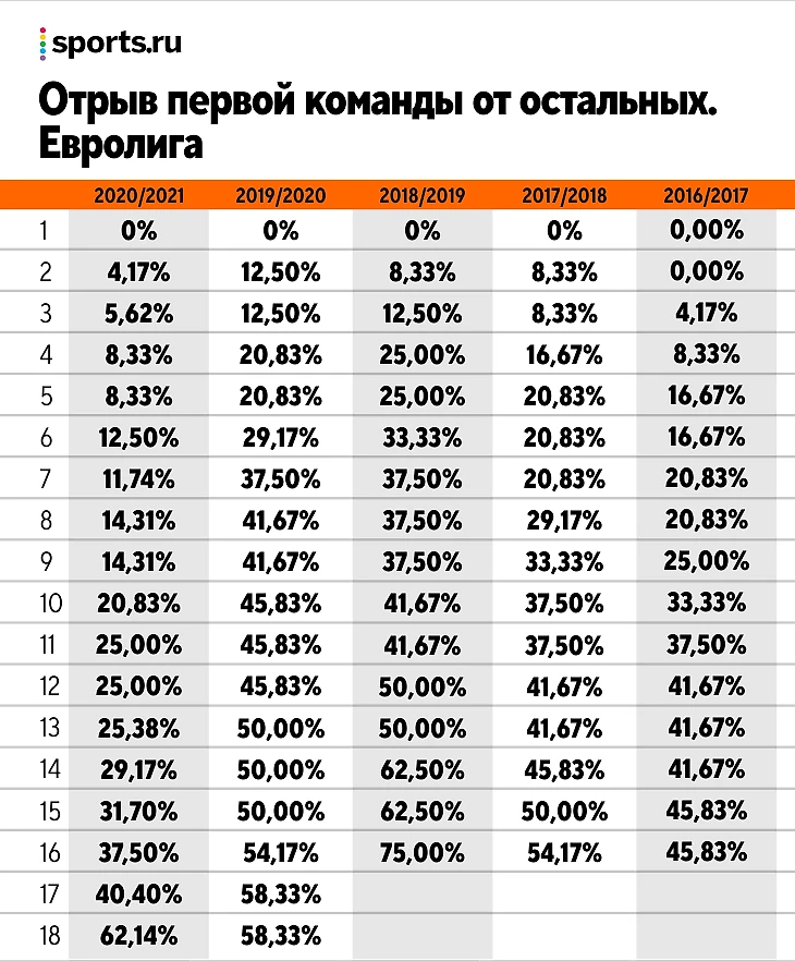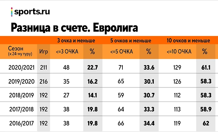 Но вот еще интересные статистические выкладки, которые подчеркивают, насколько уникален этот сезон в Евролиге.