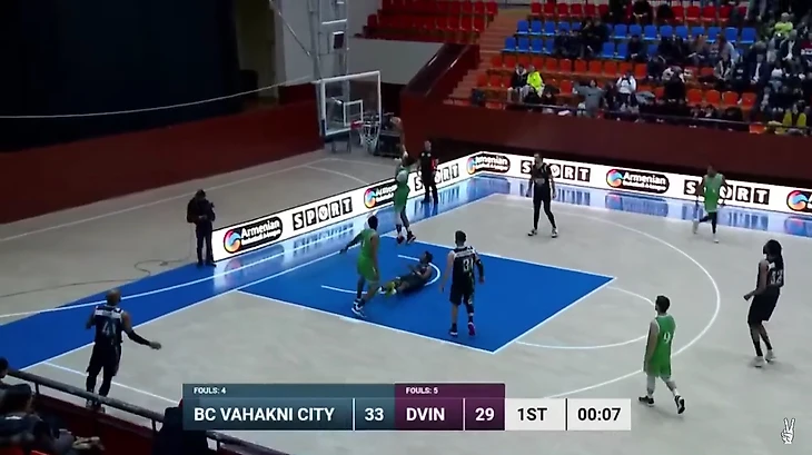 Первая четверть закончилась со счетом 35-31 в пользу Ваагни. Замечу, что за всю первую четверть не было произведено ни одной замены, только в начале второй тренер команды "Двин" Тигран Гёкчян убрал с паркета Артёма Бичахчяна и выпустил Варанта Келеджяна.