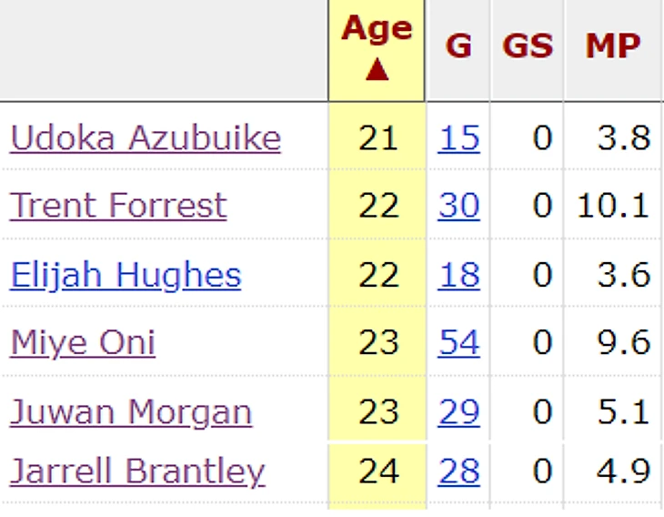 Остальные представители молодёжи играли и того меньше - от 15 до 30 сыгранных игр в сезоне и около 5 минут в среднем почти у каждого молодого игрока Юты.