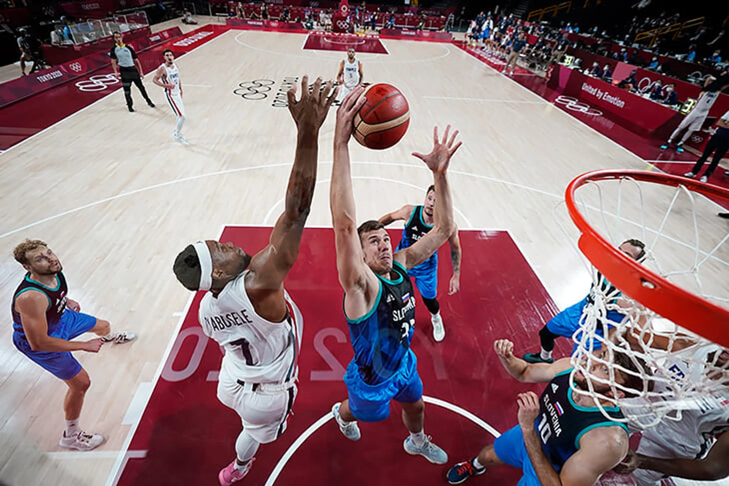 В матче с Францией конкретно Тоби оказался в безвыигрышной ситуации. С одной стороны, он сделал большой упор на то, чтобы не отходить далеко от Гобера. С другой стороны, игроки задней линии Словении (Николич/Блашич/Препелич) непозволительно долго для игр такого уровня восстанавливали свою защитную позицию после пик-н-роллов Гобера с игроком периметра Франции. В результате этого на Тоби оказывалась слишком большая ответственность, когда перед ним с мячом очень опасный снайпер, а за спиной – Гобер. Даже в статистическом протоколе можно увидеть, что Тоби чаще делал выбор в пользу Гобера.
