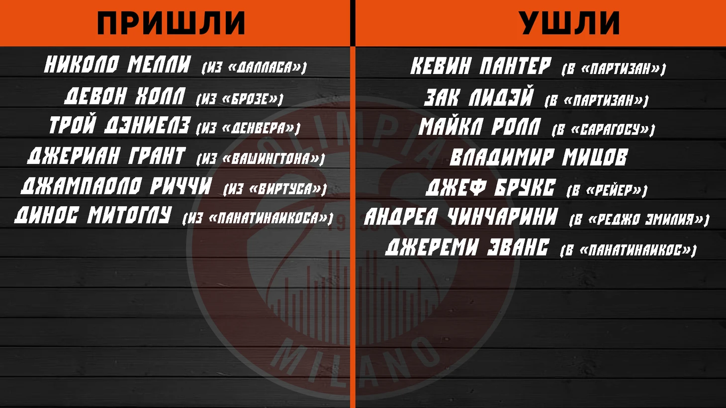 В отличие от вышеуказанных испанцев, Милан перетасовал больше половины состава, и, пожалуй, лишь поэтому находится в списке на позицию ниже. Мессина пригласил немало игроков из-за океана, которые попытали счастья в Летней Лиге НБА, но все же заключили контракт с итальянским грандом. Изменений так много, что отмечу лишь главные ключи к оценке межсезонья для главных модников Европы. Приход Николо Мелли – это потрясающее приобретение. Его появление явно оставит незамеченным уход Зака Лидэя. Хотя известный инсайдер Донатас Урбонас очень скептически относится к такой массе дорогостоящих подписаний со стороны итальянского клуба, поскольку он отмечал важность сыгранности пары Пантер-Лидэй. Не секрет, что Мессина пытался оставить Пантера в составе миланцев, но щедрый «Партизан» собрался шуметь в Еврокубке, и Пантер увязался с ними, прихватив при этом и Лидэя. Да, Милан заметно потеряет в нападении, но незаменимыми этих игроков вряд ли назовешь. Разыгрывать мяч может Дилэйни-Родригез, бросать мяч прилетел Трой Дэниэлз из-за океана. Переподписали Калеба Тарчевски. Динос Митоглу так же придется ко двору.