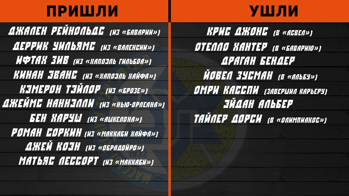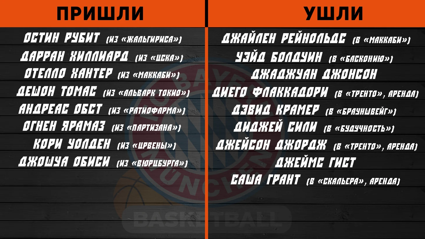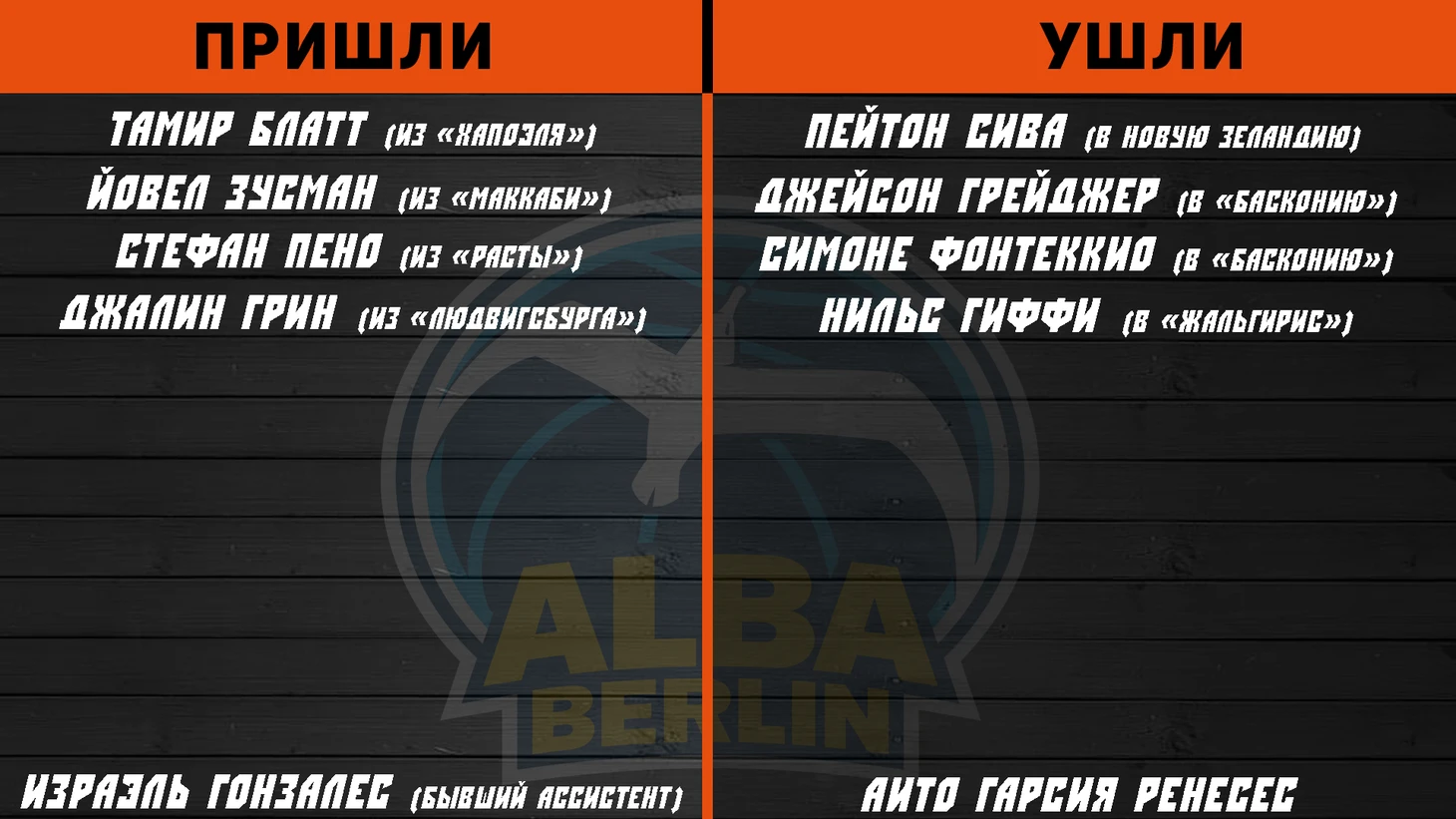 С потерями клуба можно ознакомиться в таблице, поэтому лучше отметить приобретения. Разыгрывающий Тамир Блатт (сын известного Дэвида Блатта) впервые попробует свои силы на высшем уровне, что не внушает больших надежд. Приглашение Йовеля Зусмана вовсе не выглядит как усиление. Единственное усиление, которое может показаться действительно интересным – это Джалин Грин. MVP прошлогоднего чемпионата Бундеслиги вероятнее всего будет иметь на руках карт-бланш в игре с мячом, что не кажется блестящей идеей. Но это точно привлечет внимание к его индивидуальной игре.