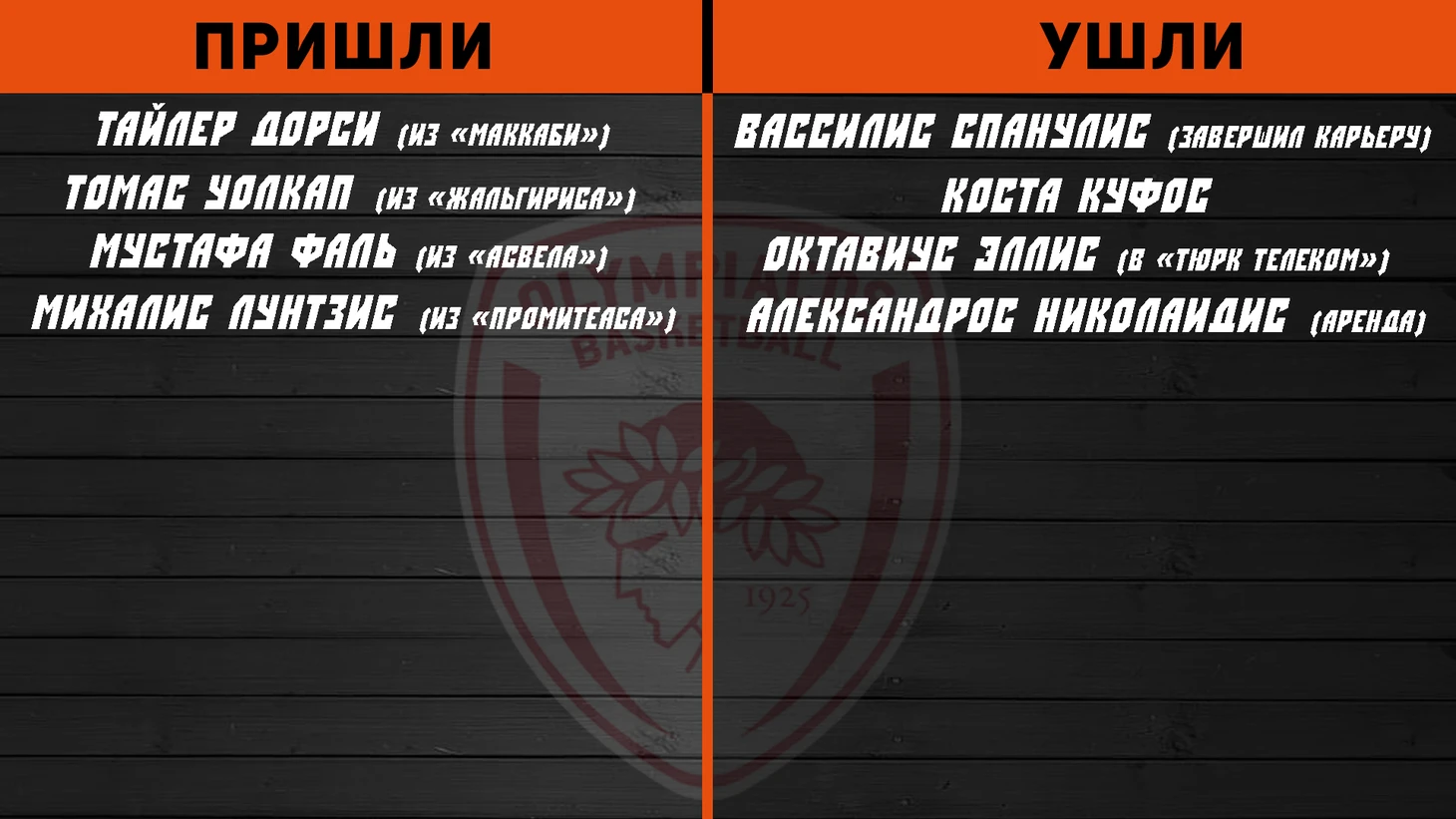 Есть подозрения, что Барцокас может построить одну из лучших защищающихся команд лиги в следующем сезоне. Несомненно, что они должны взлетать выше прежнего 12-го места в следующем сезоне (при отсутствии серьезных травм ведущих игроков). В противном случае это будет очередным провалом для команды из Греции, но уже без Вассилиса Спанулиса, который завершил свою карьеру. Томас Уолкап, Мустафа Фаль и Тайлер Дорси – ключевые приобретения греческого коллектива. Первые двое ребят добавят в обороне, которая итак была неплоха. А Дорси скорее всего повысит свои показатели по набранным очкам. «Олимпиакос» оставил бедолагу Вассилиса в покое, как и Косту Куфоса, и очень недурно усилился, подцепив пару добротных игроков с чемпионата Греции.
