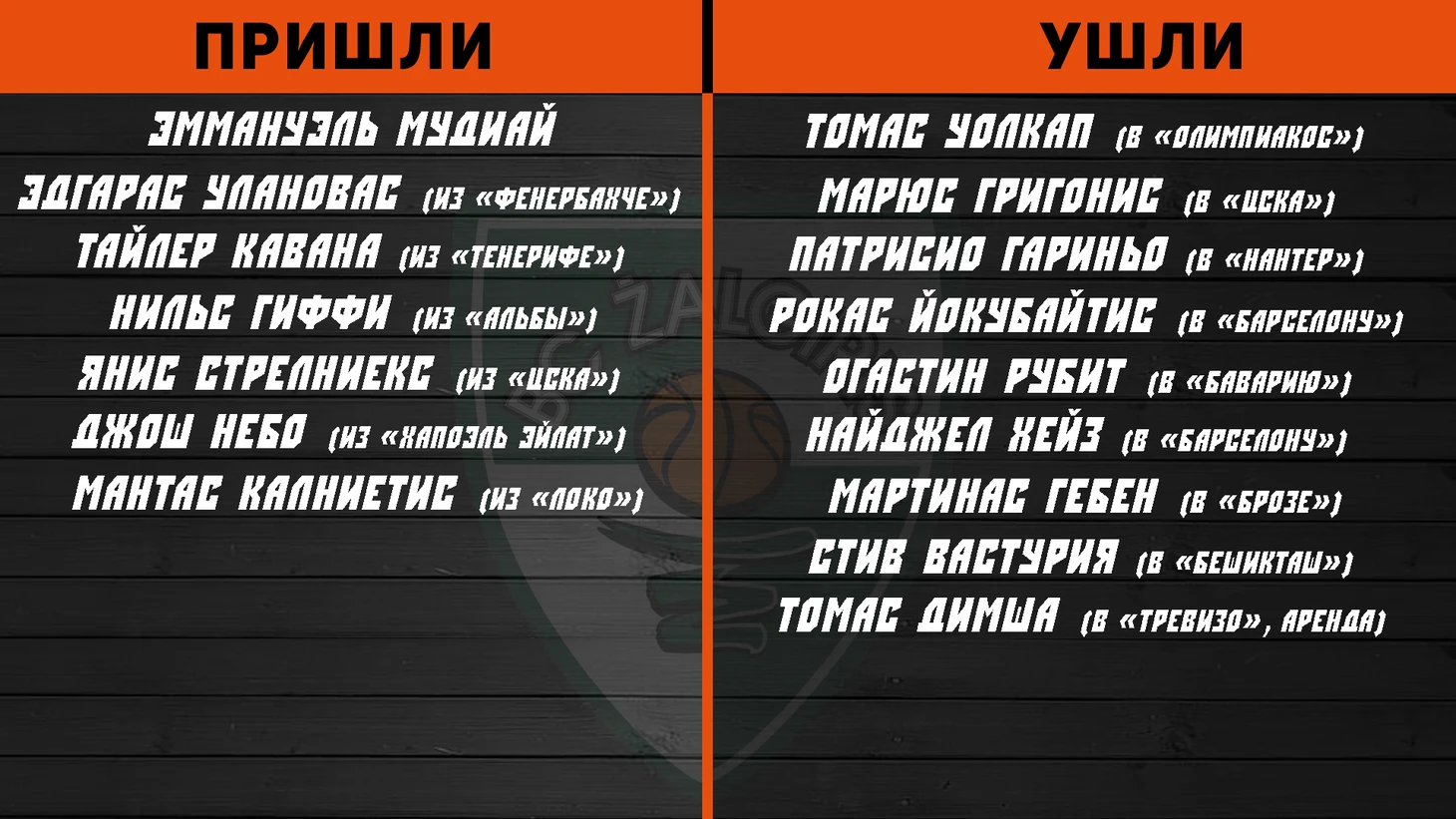 Глядя на таблицу, легко заметить громкие приобретения команды, и казалось бы, Хави Паскуаль получил очень качественных исполнителей, и это явно заявка на плей-офф минимум. Но, потеряв двух из трех самых результативных игроков в лице Уилла Томаса и генерала Пангоса, ты попросту не можешь сделать вид, что ничего не произошло. Эти два игрока и являлись ключевыми в прошлогоднем успешном походе зенитовцев. Шабазз Напьер впервые сыграет на просторах Европы, и после сыгранных матчей уже успел получить травму, (по отчетам пропустит около месяца), хотя штаб питерцев оптимистично настроен по поводу его скорейшего возвращения. Приобретения Джордана Мики, Джордана Ллойда и Миндаугаса Кузминскаса скрасят потери, но едва ли оставят незамеченными. Планка была задрана высоко, но межсезонье показало, что Манос Пападопулос знает, что делает. А в компетенции Хави Паскуаля сомневаться точно не стоит.