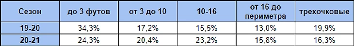 Ну то есть два сезона эта проблема никого не смущала, да? Даже в свой чемпионский сезон команда не входила в плей-офф в топ-10 (из 16) по попыткам, попаданиям или проценту.