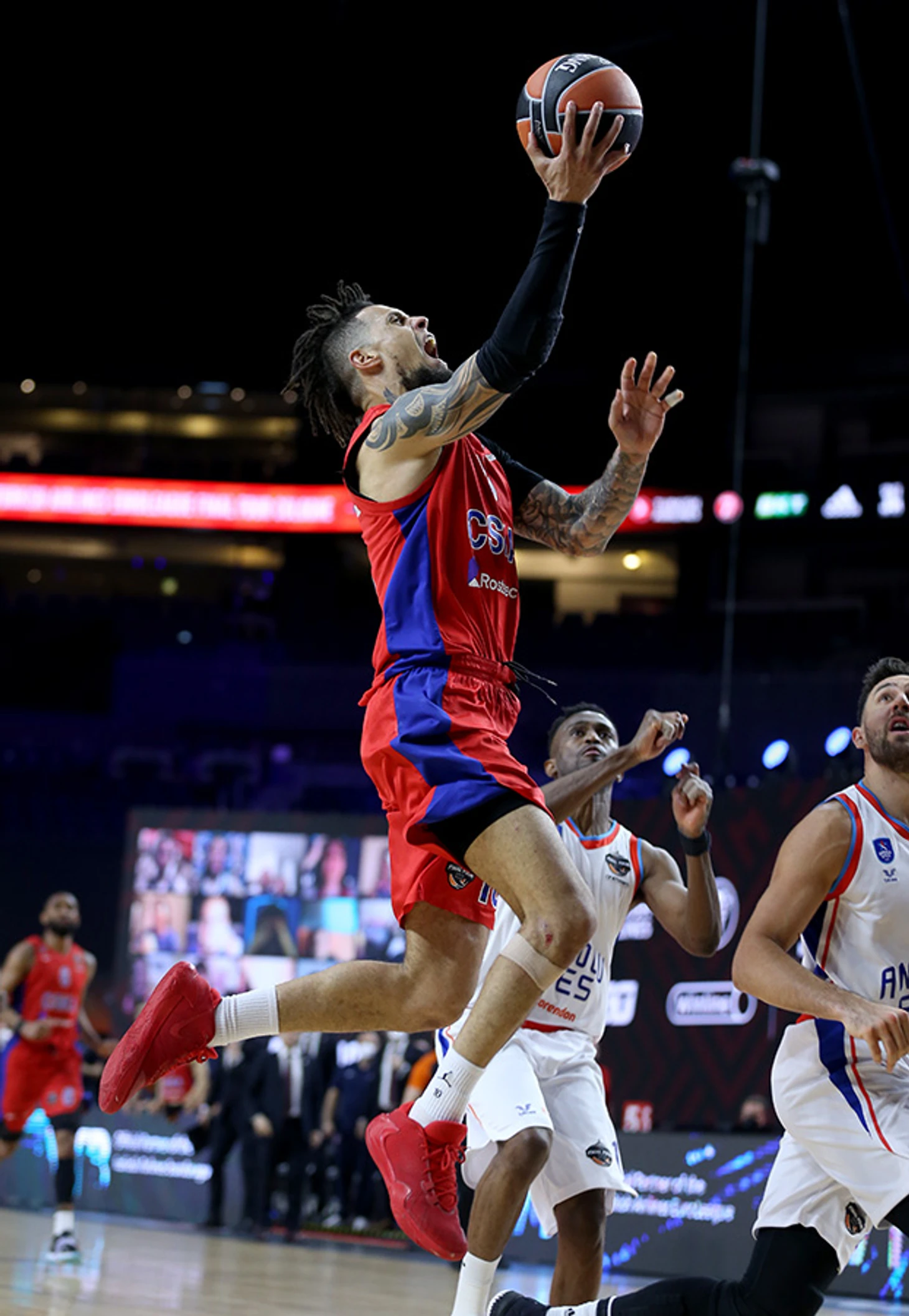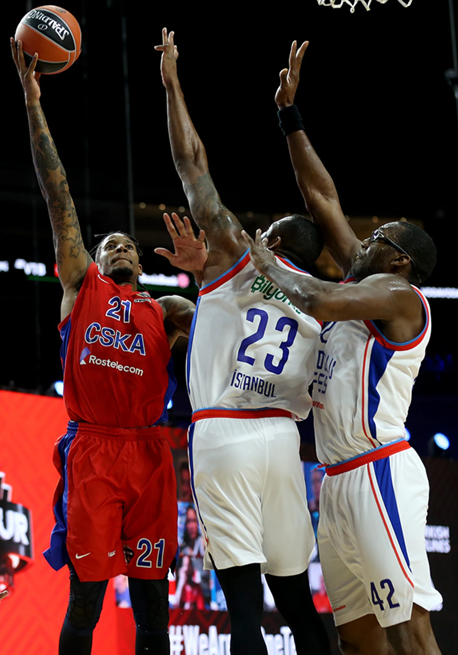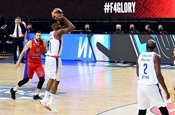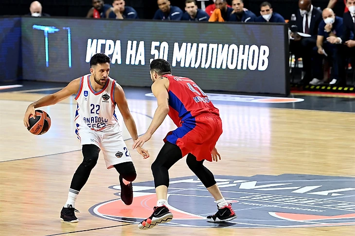 Если у армейцев и был некий секретный план на дебют встречи, то все задумки/хитрости/маневры провалились с громким треском. Задавить оппонента габаритами не получилось (турки на равных боролись за подбор и не давали москвичам набирать очки второго шанса после многочисленных промахов), а предложить нечто принципиально иное никто особо и не пытался. Просто раз за разом утыкались в бетонную стену по имени Сертач Шанли или выполняли сложные, а главное - безрезультатные броски издали.