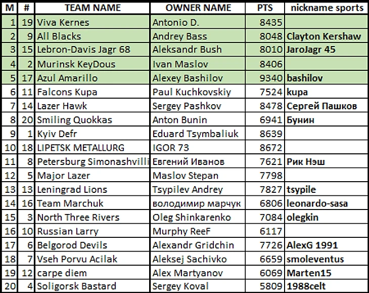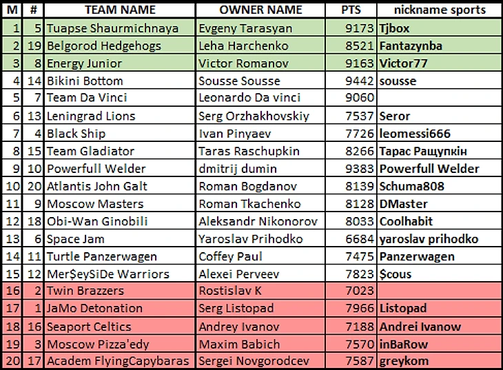 Более подробно о правилах и настройках лиги в посте одного из прошлых сезонов