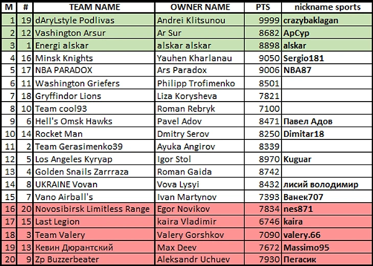 Незаявившиеся из прошлого сезона участники будут заменены на других согласно ранжиру по итогам прошлого сезона (Дивизион, место, PTS - т.е. в приоритете сохранения места - вылетевшие).