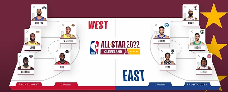 Восток: Симмонс, Ирвинг, Стюарт, Моррис, Фридом.