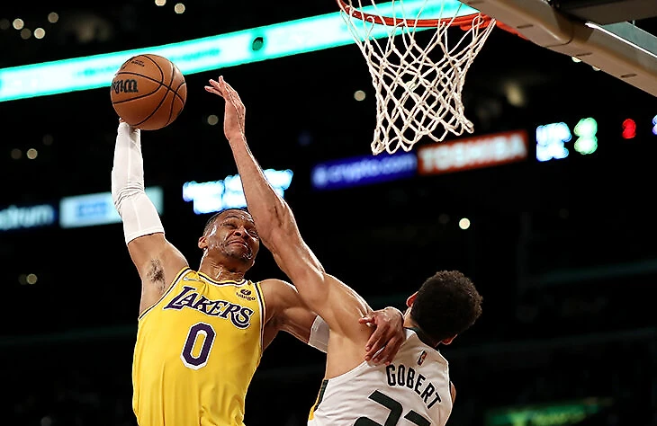 Теперь коллекция Расса, большая часть которой даже не уместилась на странице, пополнилась попаданием через Руди Гобера, а «Лейкерс» прервали серию из трех поражений подряд и одержали важную победу над хорошо организованной командой.