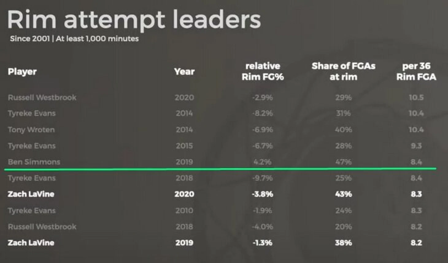 Возвращаясь к вопросу заданному в начале, мне хочется сказать, что Розас в короткое время собрал интересный состав, который в силу объективных причин смог показать свой потенциал только в этом сезоне. Задача Гупты сейчас усилить команду в долгосрочной перспективе, при этом из-за специфичности состава нужно найти игроков, которые смогут органично вписаться в защитную и атакующую модель «Миннесоты». Для меня примером идеального трейда в середине сезона является обмен Рашида Уоллеса в «Детройт» в 2004 года. Уоллес стал тем кусочком паззла, который завершил превращение «Детройта» в чемпионскую команду. На мой взгляд, есть только один игрок, который в данный момент сделает «Миннесоту» качественно сильнее – это Бен Симмонс, возможно самый противоречивый игрок лиги. Симмонс – это элитный стоппер, способный в одном владении отзащищаться против условного Трея Янга и от центрового, Симмонс поможет на щитах. При полном отсутствии броска Симмонс проходит под кольцо и умеет пасовать в качестве «short roll» большого.