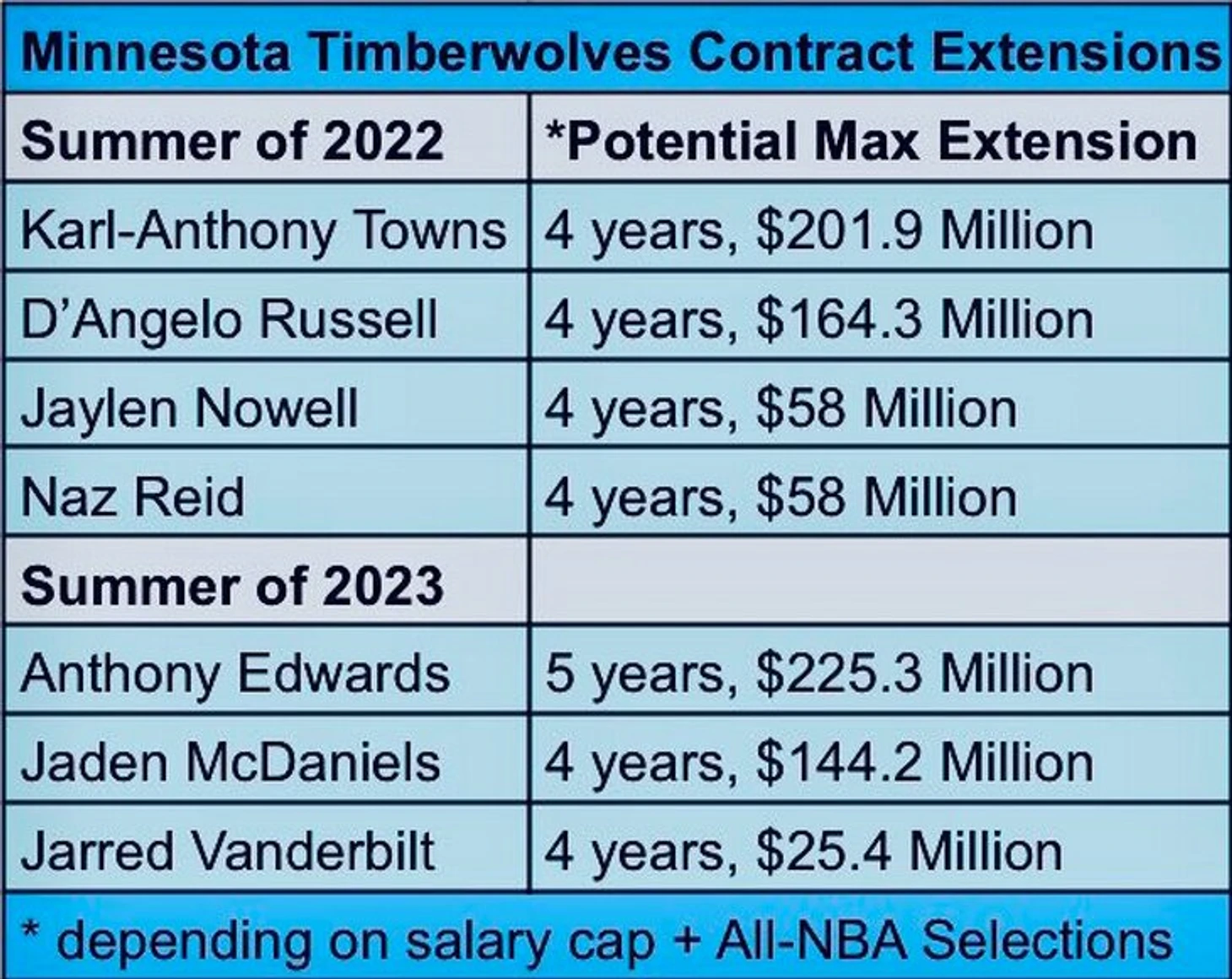 Таким образом говоря о текущей «Миннесоте» мы имеем интересную, молодую (4-й по молодости состав в НБА), перед менеджером которой стоит весьма нетривиальная задач по завершению перестройки. Исполняющий обязанности главного менеджера Гупта сказал, что «Миннесота» постарается усилиться перед грядущим дедлайном, но при этом будет действовать в рамках долгосрочных интересов. Что это значит на практике можно понять посмотрев на список игроков «Миннесоты», которые могут быть переподписанными летом 2022-го и 2023-го года.