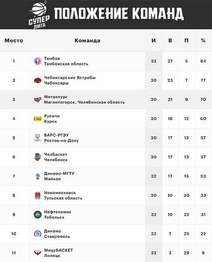 На прошлой неделе «Тамбов» выиграл все 4 матча, причем оба соперника – «Металлург» и «Челбаскет» – находятся в зоне плей-офф в данный момент.