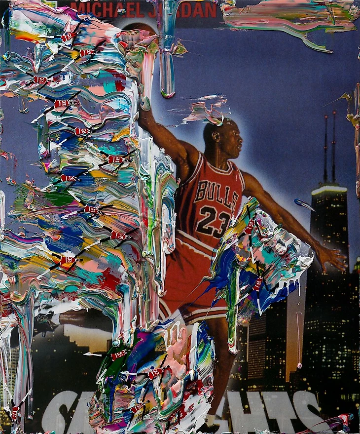 Работы художника Дэвина Троя Строттера — воплощение любви к баскетболу. Один из главных героев творчества — Майкл Джордан в разных его образах. Известный своими мрачно-юмористическими альтернативными расовыми повествованиями в различных средствах, от вырезанной бумаги до неоновых вывесок, Стротер признает основу «американской культуры» в афроамериканских исполнителях и артистах – от джаза и блюза до современных танцев, спорта и хип-хопа.