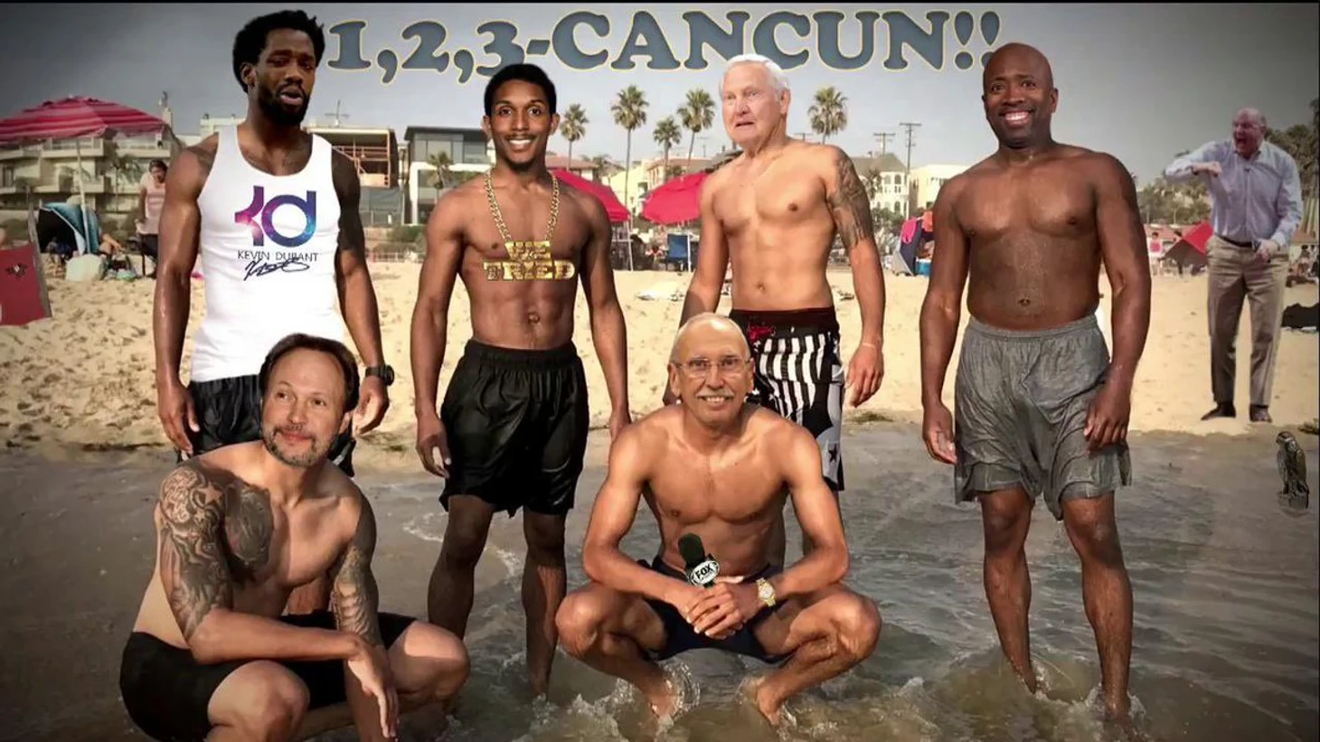 На некоторых «рыбацких» картинках появляется подпись «1-2-3-Канкун!». Это еще один мем НБА: защитник «Лейкерс» Ник Ван Эксел в 1998 году нелепо пытался снять напряжение в команде, всухую уступавшей «Юте» в финале конференции. Перед матчем он в общем «хаддле» выкрикнул «1-2-3-Канкун!» – на мексиканский курорт Канкун многие американцы уезжают в отпуск или на каникулы, так что это имя нарицательное. «Лейкерс» проиграли и вылетели (история умалчивает, кто из игроков все-таки после этого полетел в Канкун), глупыша Ника после такого проступка обменяли, а фраза прижилась.