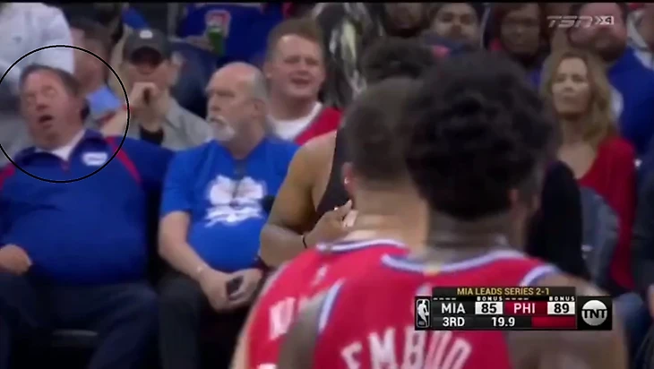 Но не все поклонники разделяют этот уровень энтузиазма. Во время четвертой игры серии между Майами Хит и Филадельфией Севенти Сиксерс, в трансляцию матча попал болельщик Филадельфии спящий во время третьей четверти.