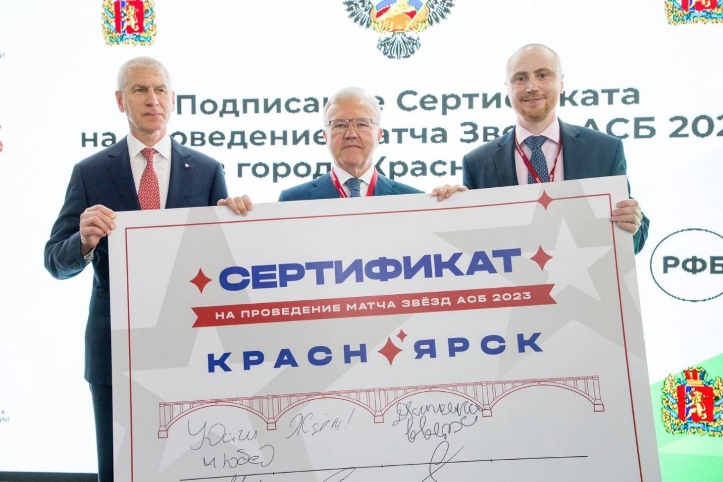 На проходящем в эти дни Петербургском международном экономическом форуме губернатор Красноярского края Александр Усс вместе с министром спорта РФ Олегом Матыциным и исполнительным директором Ассоциации студенческого баскетбола Сергеем Крюковым подписали сертификат о сотрудничестве по организации и проведению Матча звёзд АСБ-2023 в Красноярске.
