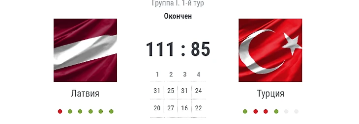 Перед стартом третьего группового этапа Латвия делила лидерство с Грецией - по три победы в четырех матчах. У Бельгии было две победы, у Сербии и Турции - по одной, у Великобритании - 0.