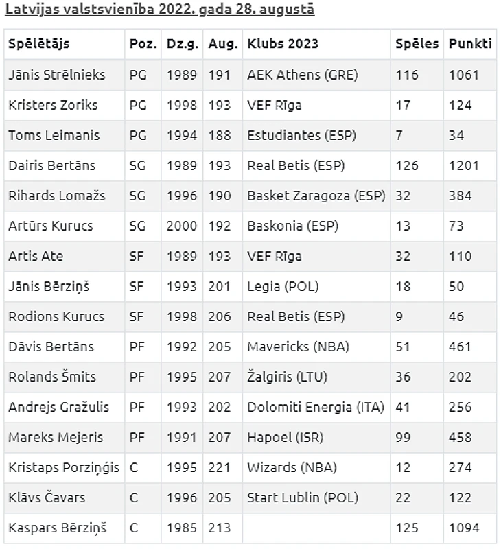 Источник: sportacentrs.com, rus.tvnet.lv, basket.lv, championat.com, rus.delfi.lv