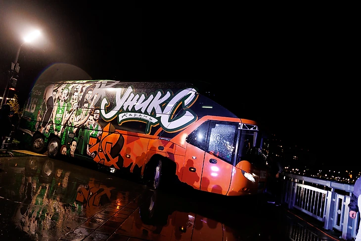 Но чем ближе дело шло к вечеру, тем жарче становилось на площадке Winline UNICS Fest (что звучит несколько неоднозначно, учитывая, что во второй половине дня в Казани моросил сентябрьский дождь – а людей как будто бы становилось только больше!). Наконец, после всех стритбольных страстей на площадку приехал виновник торжества – УНИКС. Приехал в буквальном смысле – прямо к сцене, на раскрашенном в стиле уличного граффити в клубных цветах автобусе с изображенными на нем болельщиками, символизирующим Татарстан игроком и беттинг-партнером.