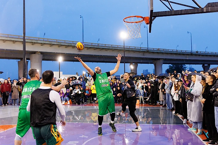 Во-первых, организаторы – УНИКС и его беттинг-партнер – ушли от сугубо баскетбола к околоспорту и превратили обычно скучное представление команды в полноценный фест для всей семьи. Конечно, баскетбола тоже было много: и турнир 3х3 с участием легенд УНИКСа Руслана Авлеева, Петра Самойленко и Игоря Куделина: