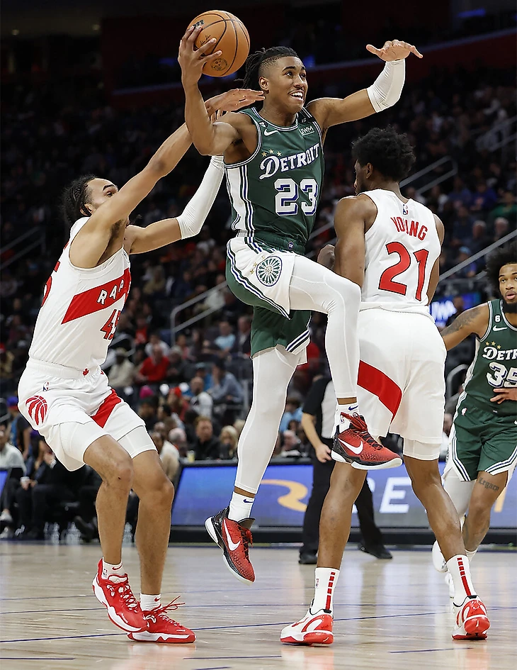 Для начала любопытство вызывает нестандартный для «Пистонс» зеленый цвет – главный визуальный якорь всего дизайна. В зеленых цветах оформлен баскетбольный зал школы святой Цецилии, заведения, в котором сдавали экзамен на профпригодность все знаменитые баскетболисты Детройта. Сотрудничество «Пистонс» и школы святой Цецилии началось еще со времен Дэйва Бинга. Бинг, чей 21-й номер выведен из обращения, успел даже побыть мэром Детройта и еще в бытность игроком договорился о регулярных пожертвованиях школе со стороны клуба.