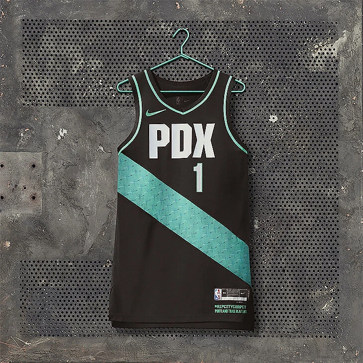 «Блейзерс» выпускают комплект формы, посвященный ковру. Серьезно. Мятно-зеленоватый узор – это не что иное, как ковер в международном аэропорту Портленда. Аббревиатура PDX, замещающая название команды – международный код аэропорта. Узор расположен наискось и повторяет геометрию традиционной полосы «Блейзерс».