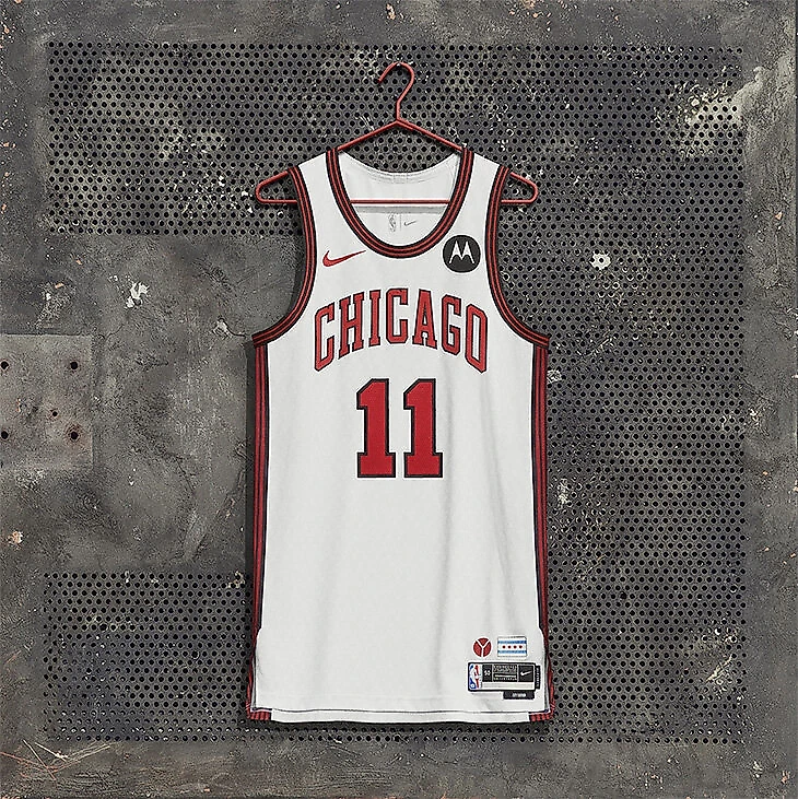 Авторы попытались закрутить основную мысль вокруг буквы Y, символа городского муниципального устройства. Они интегрировали этот символ в рисунок полос, проходящих по бокам майки и вдоль до нижней части шорт. Примастырили его рядом с флагом, рассказали, что интегрировали его в базовую структуру майки… Но что мы имеем по факту? Классическую белую майку «Чикаго Буллс» без ясно считываемых символов, нестандартных цветовых решений и массой повторяющих друг друга деталей.