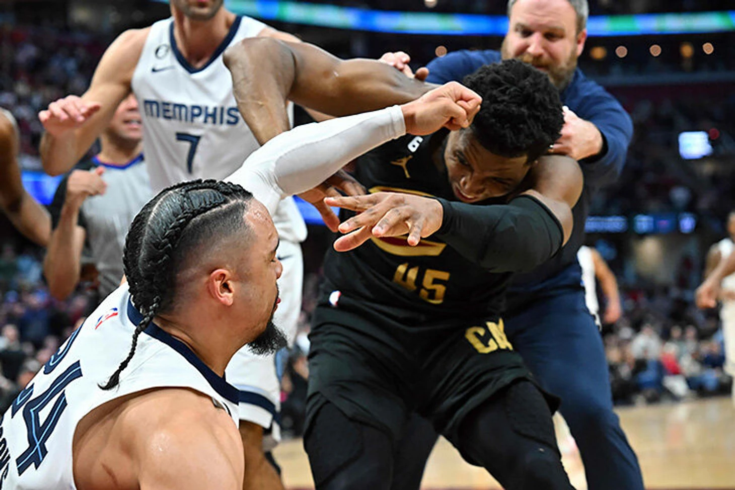 Редкая драка в НБА: Митчелл не сдержался после удара в пах. А фанатов впечатлил тренер «Мемфиса», в борцовском броске сваливший своего же