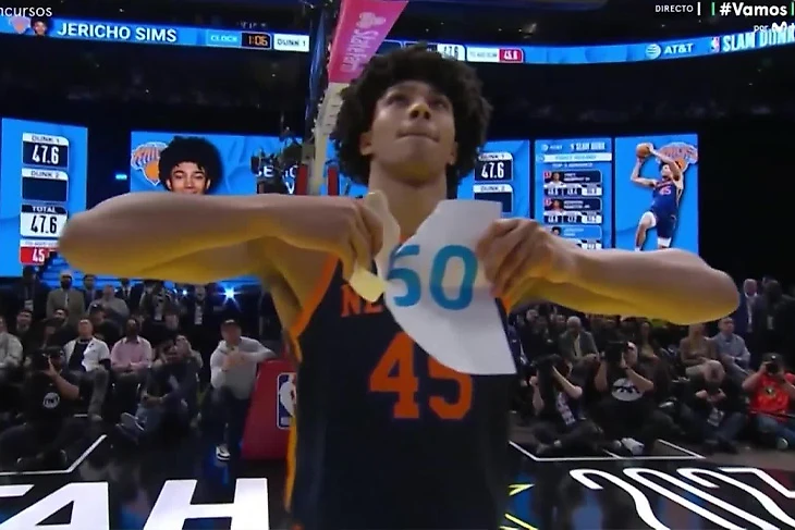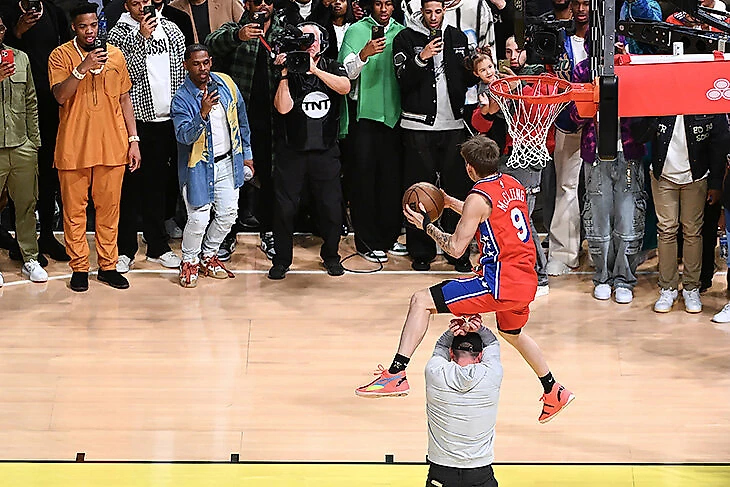 Белый паренек из G-лиги, метящий в профессиональные данкеры и подписавшийся с «Филадельфией» ради красивой картинки, выбил три данка по 50 (лишь 9-й игрок в истории) и вытащил мероприятие.