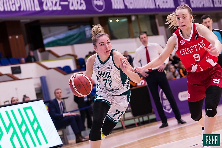 Наши девушки хотели завершить регулярку на мажорной ноте и навязали сопернику плотную борьбу. «Спартак» имел «+12» к середине игры, но викингов такой расклад не устраивал. «Руна» очень быстро перехватила инициативу и выравняла игру.