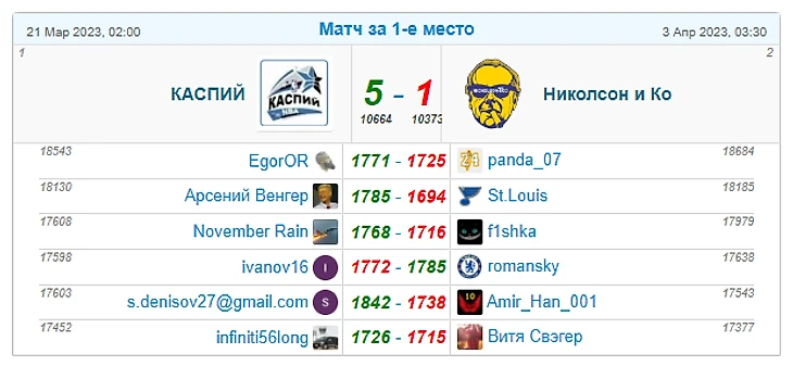 MVP Финала - s.denisov27@gmail.com Одержавший самую большую победу с разницей 104 ФО.